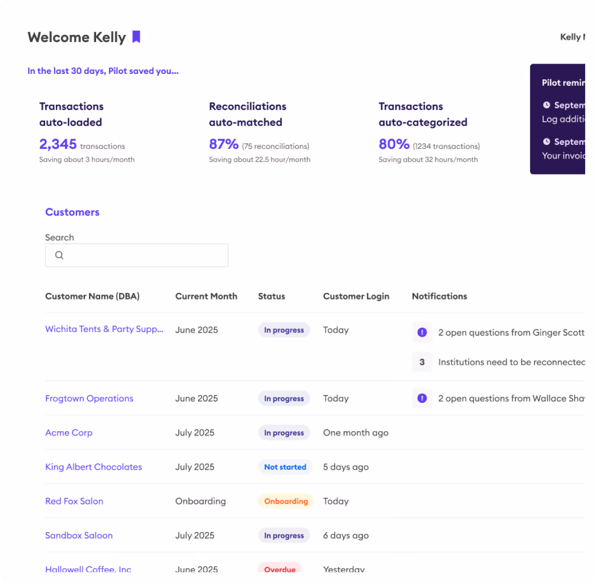 The main thing to know about the transition: Pilot runs on top of QuickBooks Online. If your clients are already on QBO, onboarding is straightforward.